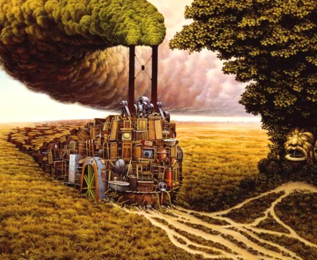 Сначала воспринимаешь всё, как нечто среднее между научной фантастикой и стимпанком. Автор изображает город, который непрерывно движется по рельсам куда-то непонятно куда, преследуя загадочный Оптимум. Если движение остановится, то люди погибнут. Внутри городка работа слаженная: есть гильдии, каждая из которых отвечает за определенные действия, например, укладку путей, исследования местности впереди, строительства мостов и т.д. И как я уже писала ранее, первая половина - сплошная лекция о том, как всё устроено. Главный герой Гельвард вступает в гильдию, становится учеником и пробует себя в разных профессиях, и его глазами читатель видит город изнутри и немножко снаружи. На протяжении истории повествование будет меняться от 1 лица к 3му несколько раз для того, чтобы можно было объективно посмотреть на всю картину в целом. Но всё равно скучно.