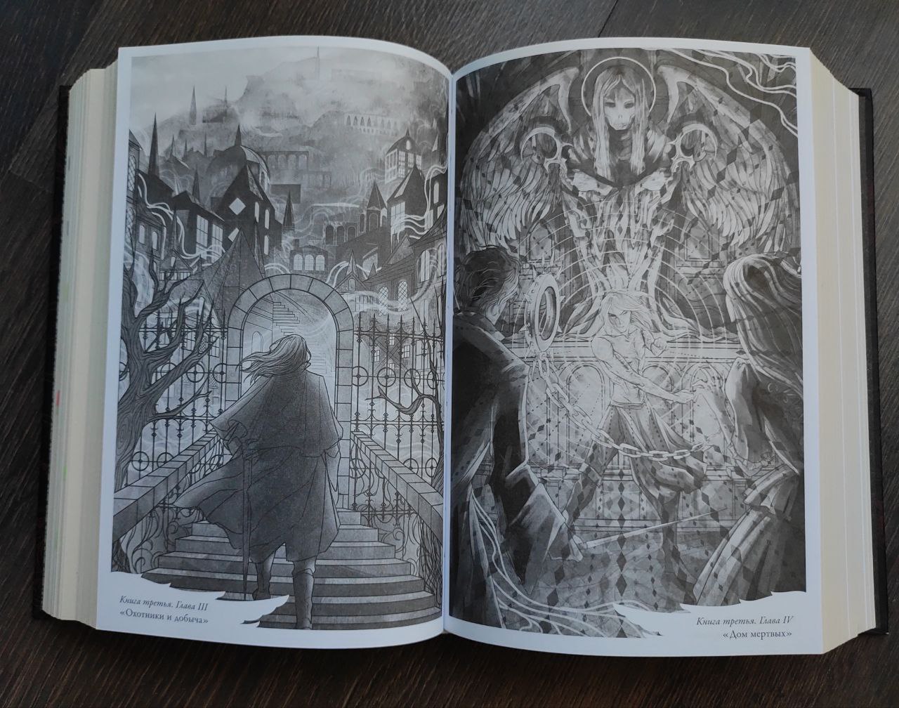 Иллюстрации, отдельно от книги, воспринимаются весьма сносно на уровне фан-артов, но как дополнение к книге они чересчур «сладко» выглядят. Ты себе представляешь грязные улицы, вонь от больных тел и запах ладана в соборах, напудренных аристократов на балу. Открываешь иллюстрацию и не понимаешь, почему там все так идеально, почему выражение лиц героев не соответствуют с описанием в книге.