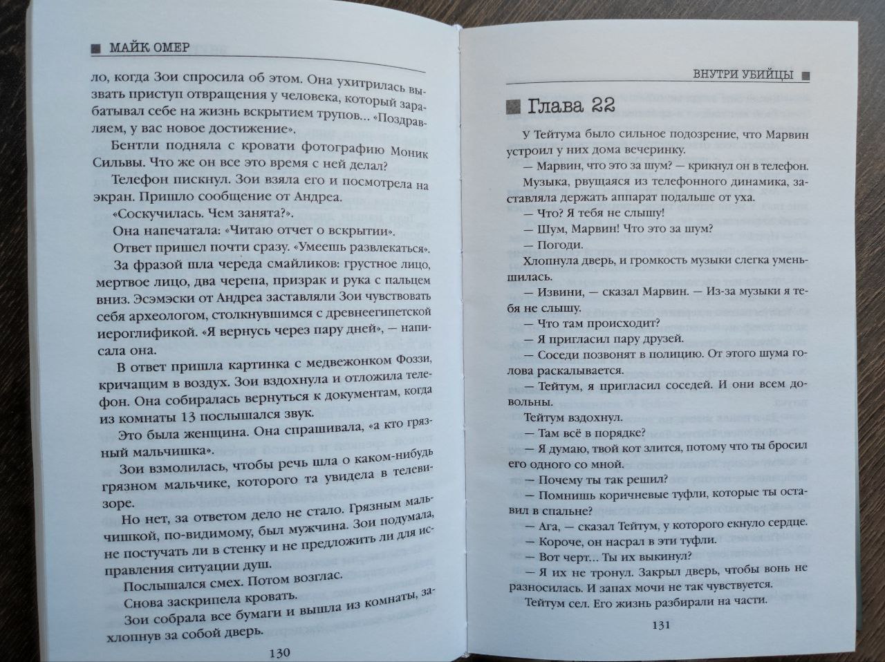 Триллер захватывающий и интересный. Благодаря этой книге я в целом полюбила такой жанр. Интересно переплетаются прошлое и настоящее. Переживаешь за главных героев, нервничаешь спасут ли они очередную жертву до того как убийца её убьёт.