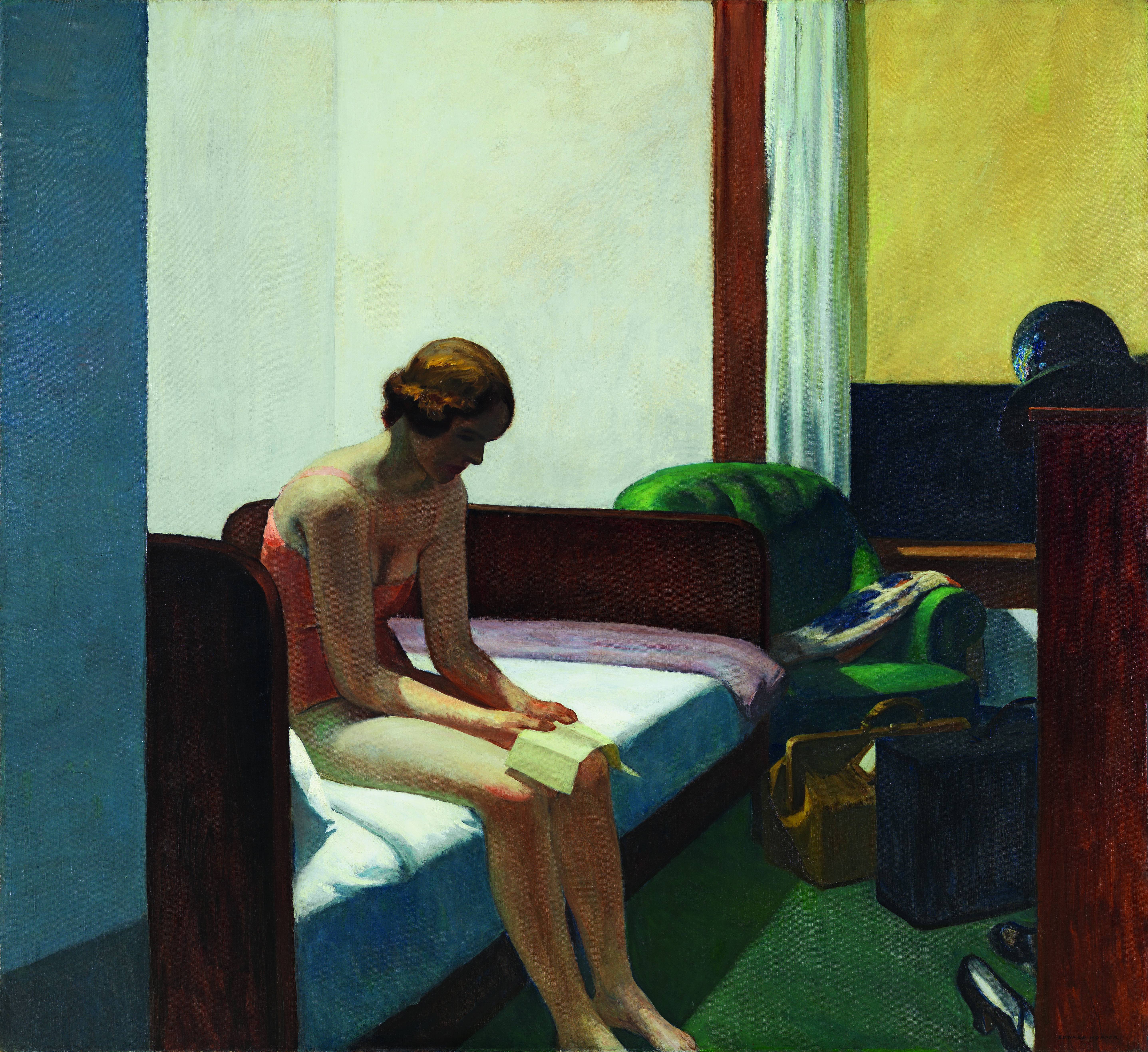 То, что все герои имеют тёмную сторону, и скрывают половину фактов о себе, напомнило мне картину Эдварда Хоппера "Женщина в отеле", где каждый элемент показан лишь наполовину, а вторую половину скрывает другой предмет картины: кровать закрывает кресло, чемодан скрывает часть саквояжа, шкаф сразу три предмета наполовину загораживает и т. д. Прямо как черепицы на крыше.Убийца, весьма неординарная личность, но он озлоблен на весь мир и даже понимает героев таких книг, а в голове у него творится нечто подобное.