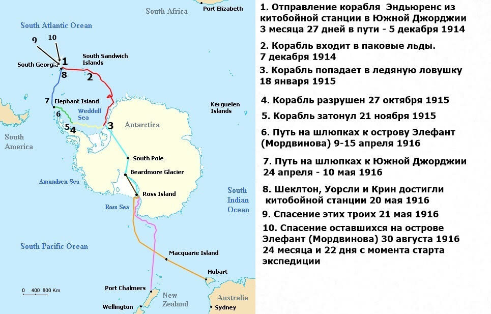 Нашла карту путешествия у берегов Антарктиды с таймингом:Как ни странно, никто не падал духом. Все оцепенели от усталости, и никто не задумывался об ужасных последствиях потери корабля. Их даже не волновал тот факт, что лагерь находится на льдине толщиной менее шести футов. Сейчас это казалось раем по сравнению с кошмаром непрерывной работы и полной неизвестности последних дней на «Эндьюранс». Людям было достаточно оставаться живым, и они просто делали все, что нужно, чтобы выжить.