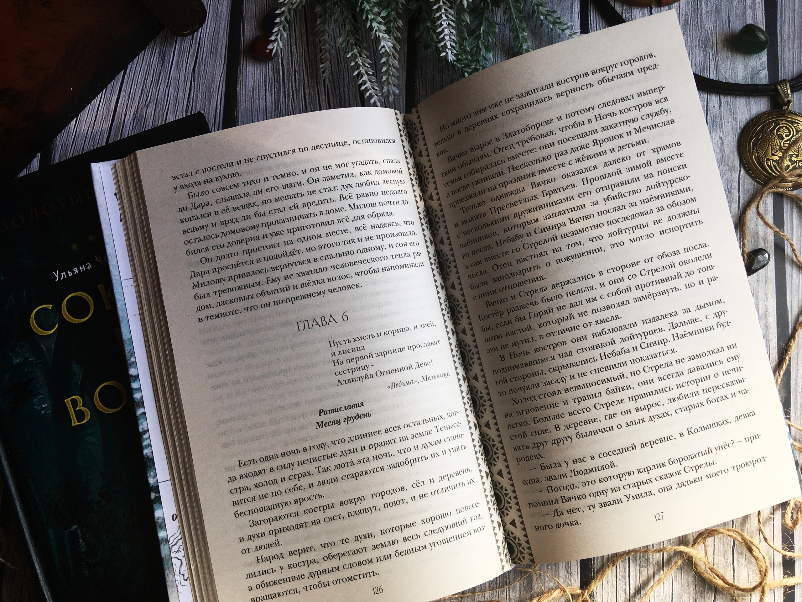 Я не упомянула это в отзыве на первую книгу, но за стиль повествования хочется благодарить автора уже с первой страницы. Здесь нет нарочитой стилизации. Читателя и героев помещают в продуманный мир с элементами славянского фольклора, а не стилизуют историю под славянское фэнтези. «Славянскую» атмосферу создаёт не то, как говорят и думают герои, а то, что именно они говорят и думают.
