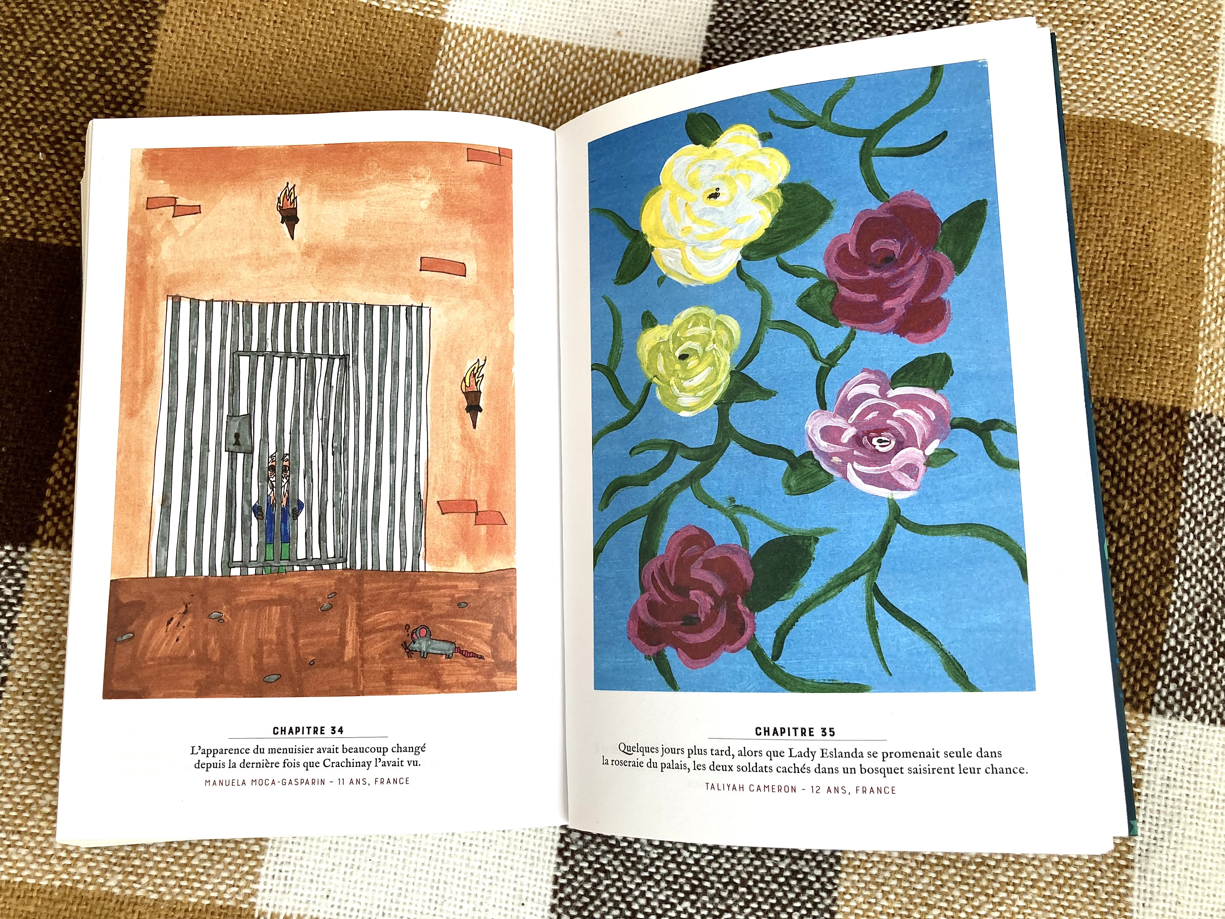 Не следила за развитием событий в Твиттере, куда главы книги выкладывались по мере написания - инициатива мамы Ро, призванная подбодрить детей и их родителей в период самоизоляции первой карантинной волны, но история создания поучительна и прекрасна. Отрывки тотчас переводились на разные языки, а дети по всему миру рисовали иллюстрации. Все доходы от бумажной, электронной и аудиокниг будут направлены на цели благотворительности. В русском переводе книга вышла, оформленная сорока тремя рисунками российских детей.
