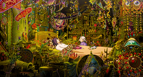 Что меня впечатлило больше всего – это собственный мир каждого из героев. То есть Софи варится в своей каше, а чародей Хоул в своей. И зритель невольно перемещается то вместе с Софи, то вместе с героем. И если смысл действий Софи ясен (так как мы сидим в ее голове, хоть повествование идет от третьего лица), то перемещения чародея хаотичные и нелогичные.