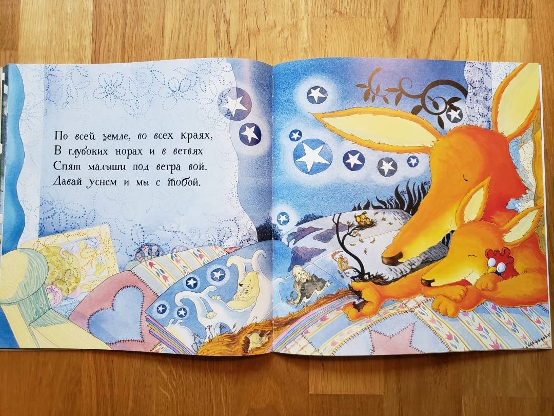 а короткие, ритмичные фразы легко воспринимаются малышами. Если читать спокойным вкрадчивым голосом, то будет вообще идеально. Уютные сцены с животными создают ощущение защищённости, картинки приятные и хорошо дополняют книгу.