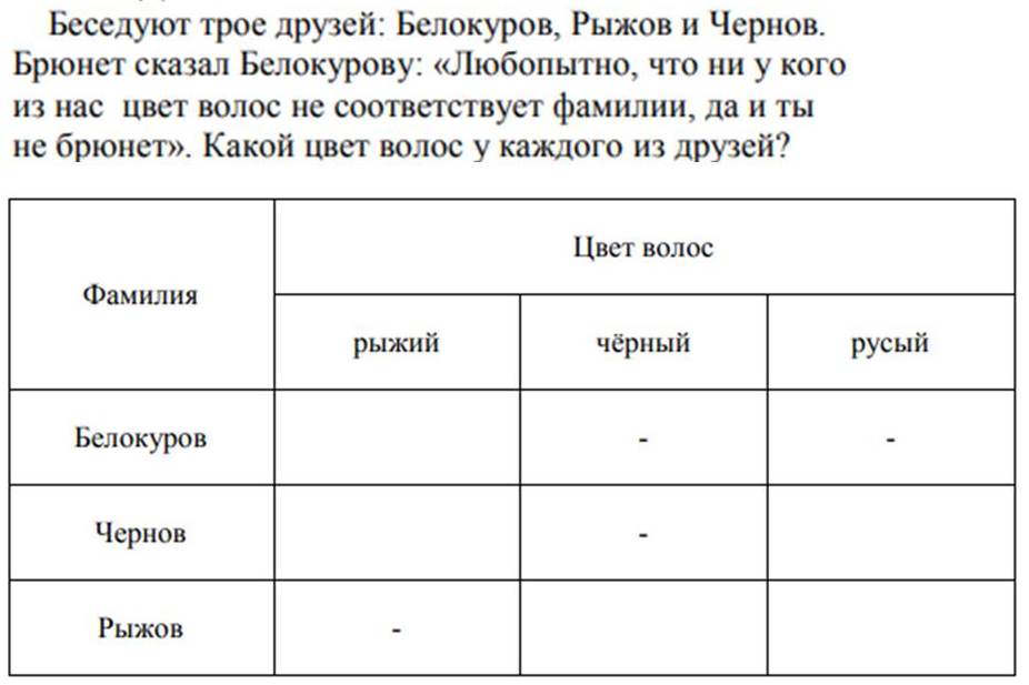 Во время чтения хотелось составить таблицу, какую используют при решении задач на математическую логику. Наподобие этой: