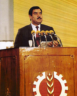 Мохаммад Наджибулла. Последний президент Афганистана до прихода к власти талибов, врач-гинеколог. Свергнут после вывода советских войск из Афганистана (1989) - в 1992 году. Последние четыре года жизни провел в здании миссии ООН в Кабуле. Казнен в 1996 году талибами. Тело было выставлено напоказ перед афганским народом.
