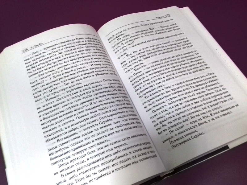 Менять свое мировоззрение, принимать все на веру не потребуется. Разве что прочитать "Хижину" спокойно и внимательно. Никуда не торопясь. Делая паузы, чтобы подумать, поспорить, проанализировать свои мысли. Этим мне книга и понравилась - поводов задуматься встретилось предостаточно. Написано уверенным и простым языком. Не пришлось спотыкаться ни на построение фраз, ни на избыток ненужных описаний, ни на логику поступков или несоответствие поведения персонажей заявленному возрасту.