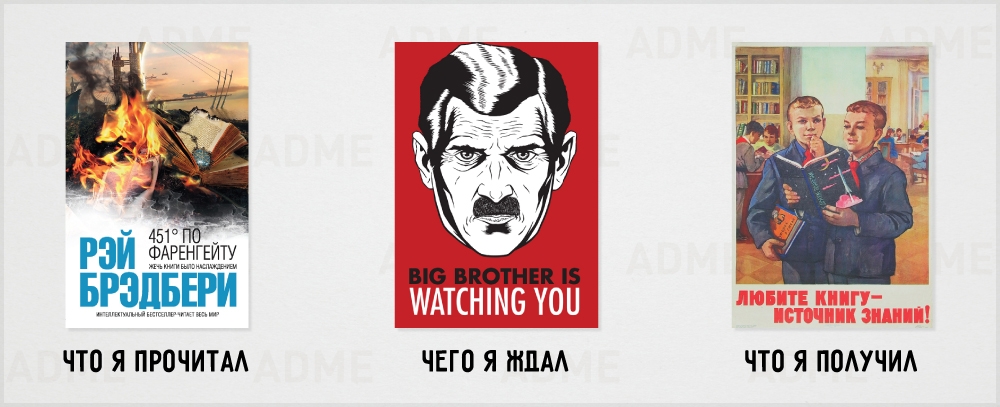 Если подумать— не похож ли тот мир на наш? Если отбросить сверхтехнологии, немного подправить , то да. ДА! У нас в школе не так уж мало людей, которые читают только расписание уроков. А что будет лет через сто? Да и не в книгах дело. Нам нужен экшен, больше экшена, короче, резче. Меняется образ жизни. Книги— лишь его часть.