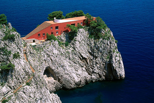Вилла Манарарте, Капри, Италия, 1937г.Эмилия как образ, как типаж, безусловно, интересна. В её молчании, манере вести себя, в её представлении о жизни много томного, манкого и одновременно гнетущего. Всепоглощающая чувственность надежно забетонирована в стремлении к комфорту. Однако если бы мы не увидели Бриджит Бардо в роли Эмилии, вряд ли мы бы так ярко представили и поняли эту женщину. Чего стоит этот взгляд! Наверно только таким женщинам простительна убийственная фраза ты не мужик. Любовь для неё вовсе не то, что для её мужа, и мне, как женщине, это более чем понятно. Есть у нас в крови стремление к защищённости, и материальная составляющая тут играет не последнюю роль. Для меня любовь-это восхищение. И мужчина непременно должен обладать тотальным качеством, которого мне никогда не достичь. Со временем обрастаешь привязанностью, большей близостью, но то самое, первостепенное качество-это ось, вокруг которой все вращается. Не станет этого качества-рухнет все. Идеал померкнет. Рядом обычный мужчина, ничуть не лучше других, случайный. Придет презрение. Его испытывала Эмилия, поняв, что Риккардо не в состоянии дать ей всего. Что она ошиблась с выбором. Он будто каждый раз доказывал ей это, толкая в объятия Баттисты.