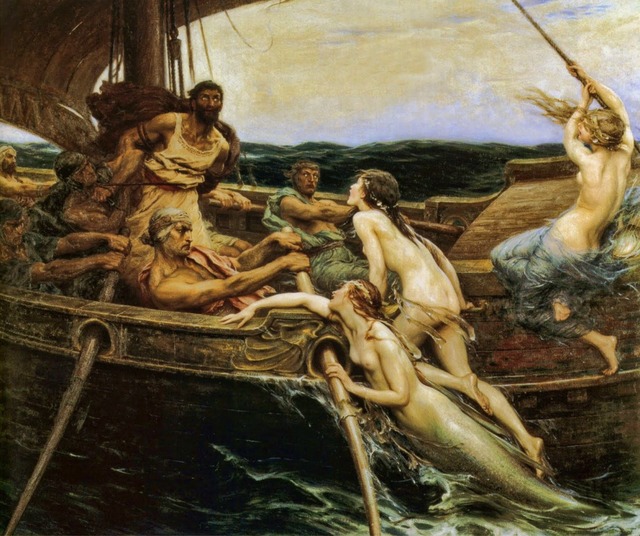 Г.Д.Дрейпер, "Одиссей и сирены", 1909г.Древнегреческий странник, много лет скитающийся в посейдоновых бурях, и ожидающая его спутница, отвергнувшая многих ради одного-единственного мужчины. Автор окунает сюжет в размышления об этом мифе, его интерпретации на современный лад. Сквозь череду сомнительных доводов и анализов Риккардо видит себя на месте Одиссея. Он понимает, что шёл по ложному следу. Что корень всех бед в одной фразе "ты не мужик", принять которую невозможно. Однако Риккардо никак не реагирует на надругательство жены. Можно обвинить его в безволии, перестать сопереживать. Я была близка к этому, но почувствовала, что воля к нему возвращается, конец метания близок.