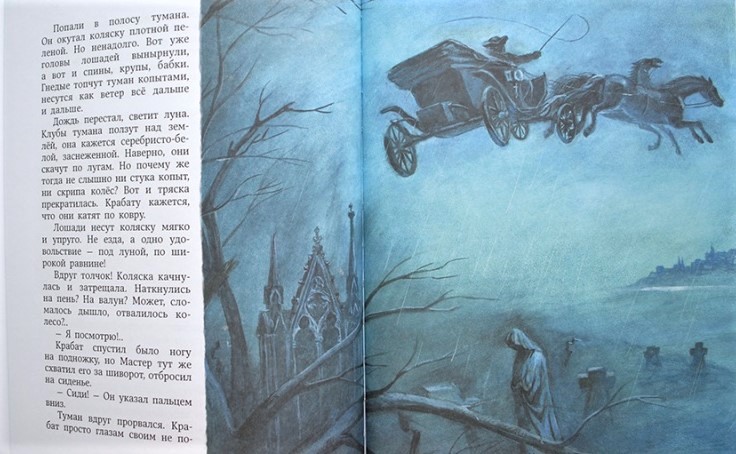 Да, есть в "Крабате" очень сочные момента. Например, описание дъявола - человека с красным петушиным пером в шляпе, который в новолуние приезжал на мельницу. Или полет Мастера и Крабата по небу на колеснице - в этом есть даже какие-то Гоголевские нотки. Или образ Юро...